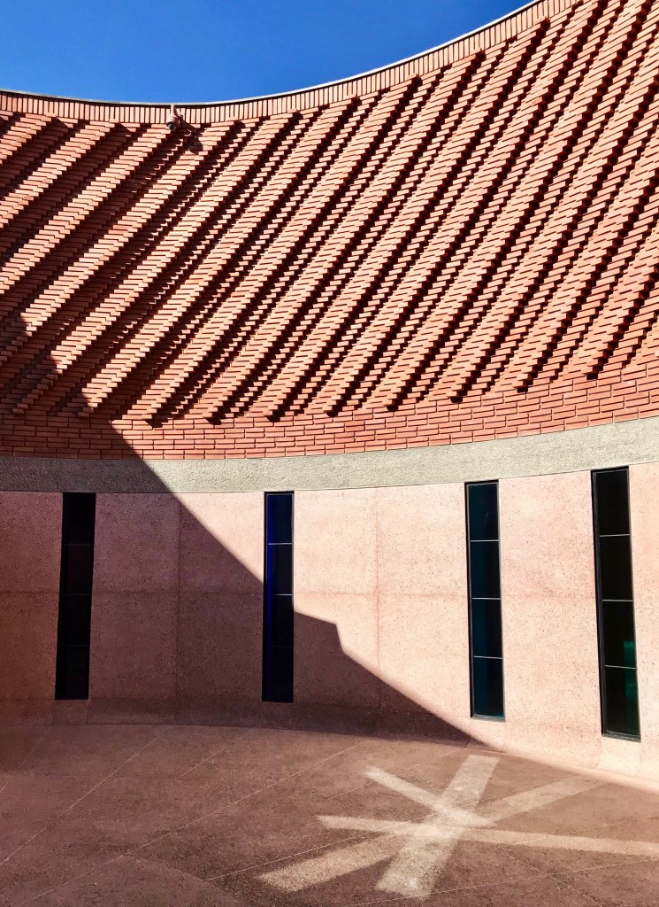 Better known is the Musée Yves Saint Laurent Marrakech, located in the city beloved by Yves Saint Laurent and Pierre Bergé. Designed by Studio KO, the terracotta brick building pays homage to Moroccan materials, though uses them in a more modern and abstract design. A central courtyard open to the skies changes throughout the day thanks to the Moroccan sun, which casts shadows across the building.
