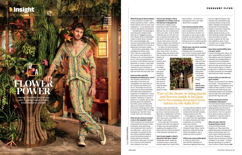 Over the past six years I have interviewed figures who travel frequently for work for Business Traveller’s Frequent Flyer profile (formerly known as Air Miles). My aim has been to steer away from corporate roles, and remind people that the likes of chefs, actors, musicians, artists, stunt doubles, location scouts – you name it – are business travellers too. See a few examples below, with links to the online versions.
