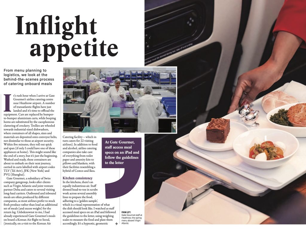 A feature on the process of catering in the skies, published in the July/August 2023 issue of Business Traveller.