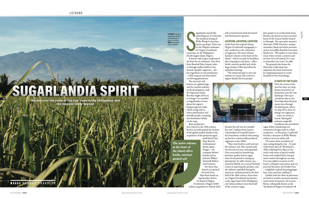 A feature on the rum trade and island retreats in the Philippines, published in the July/August 2024 issue of Business Traveller.