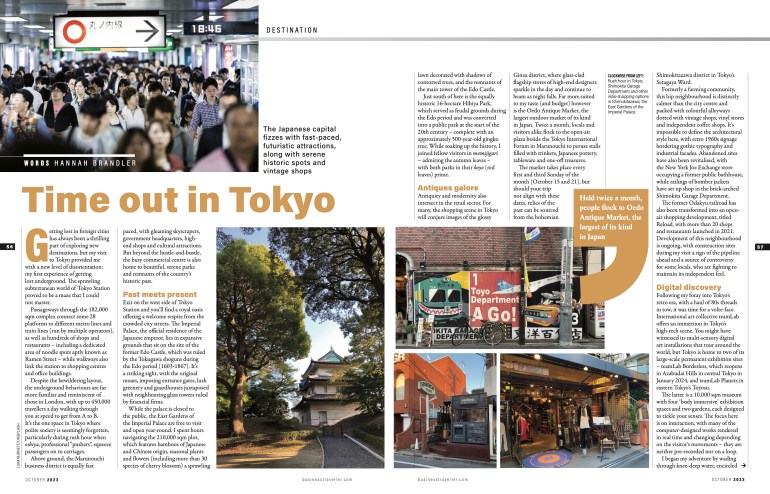 A feature on the fast-paced, futuristic Japanese capital, published in the October 2023 issue of Business Traveller.