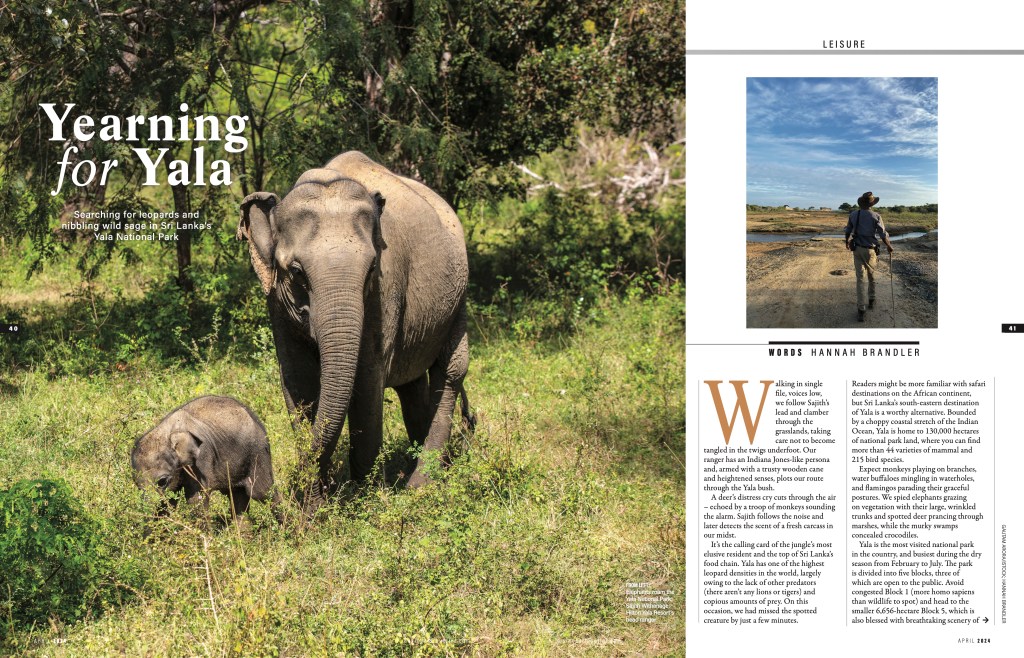 My feature on Sri Lanka’s Yala National Park was published in the April 2024 issue of Business Traveller.